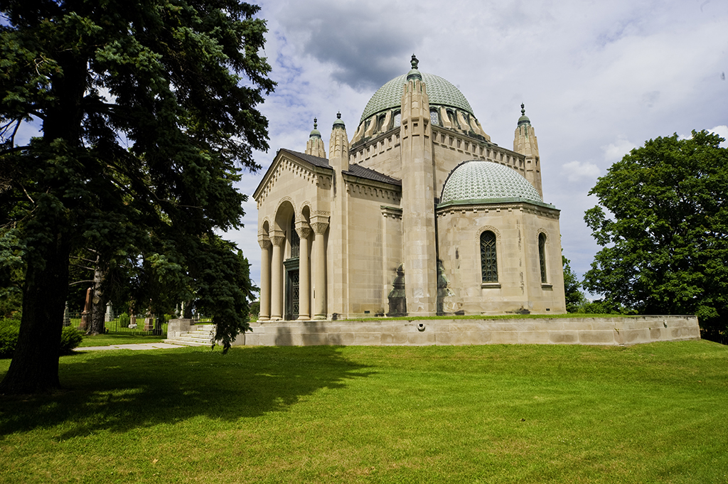 Memorial hall and cemetary.